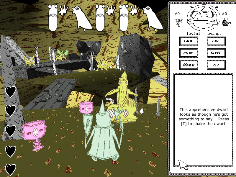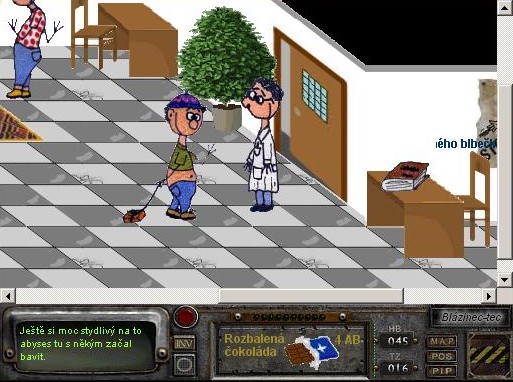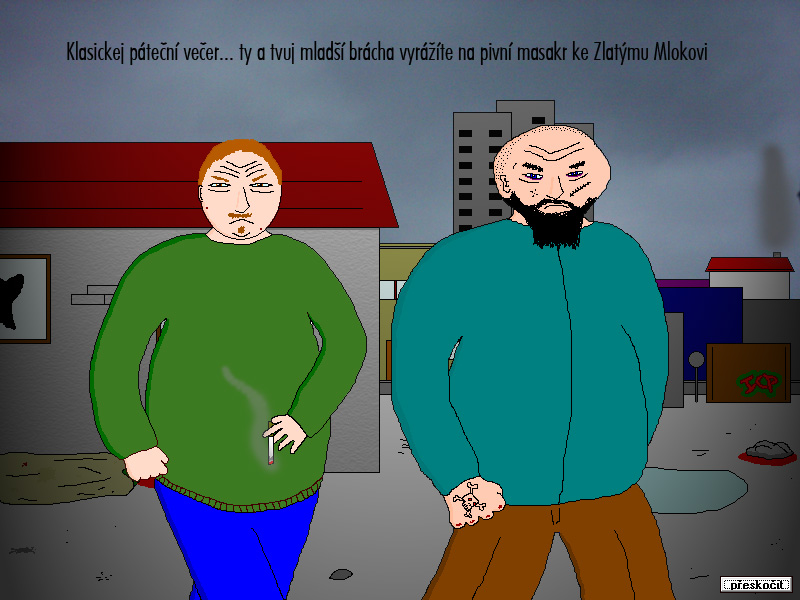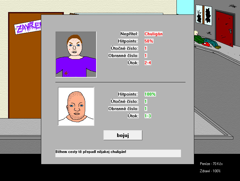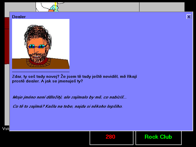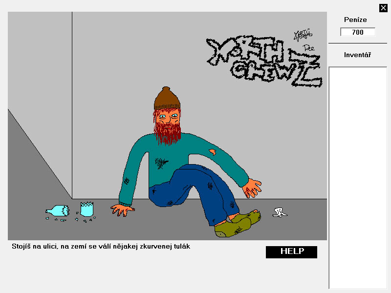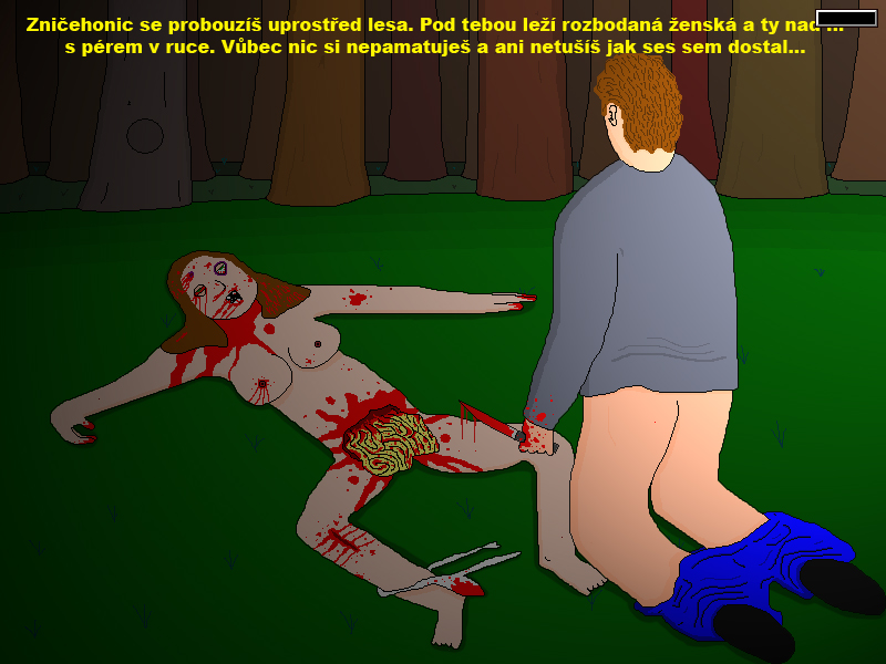 the largest and nastiest of all ZNK games, outdoing the length and brutality of the others by an order of magnitude. you play as Jarda Klečař, a drunkard, who, in a total alcoholic stupor, bets his brother a bottle of rum that he can kill 6 people in 6 days. the following days consist of his insane stumblings as each day, a strange force hints at his next victim. largely considered the best ZNK game. |